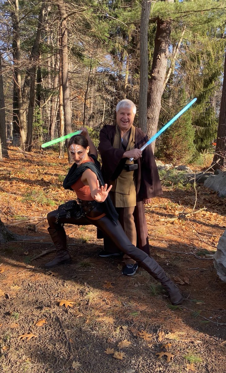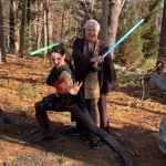 I made my dad’s childhood dreams come true and turned him into a Jedi with his brand new lightsaber; his face says it all 🖤 #starwars #jedi #Christmas #starwarscosplay #cosplay