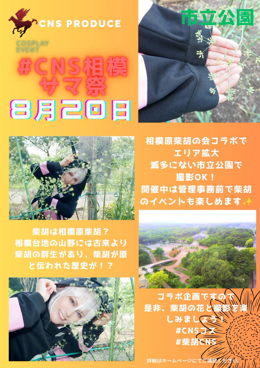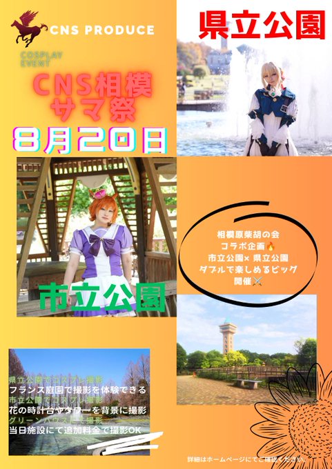 夏だ☀️☀️ サマフェスだ🔥🔥 CNSだ!! 8月20日(日) 神奈川県 相模原市の県立相模原公園&市立麻溝公園ダブルでコスイベ開催決定! え!? 1,500円で参加出来ちゃうの!? 数量限定!? 予約急げ😤😤 cns-produce.com/event-details/… ※1部エリア制限がございます。 #CNSコス
