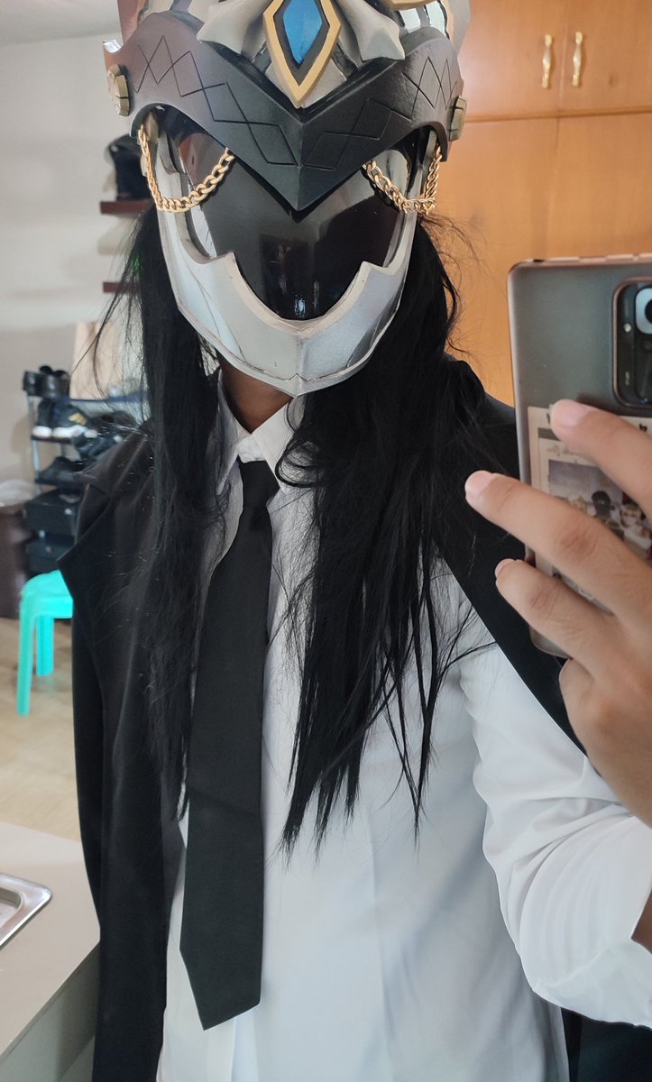 Made a Capitano helmet/mask because I liked the design:) its been sitting here for a while with just the veil and the chains missing #GenshinImpact #Capitano #cosplay