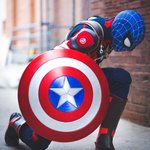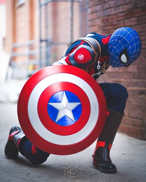 Superhero pose! COOL LOOKING! Bad for the knees.... #cosplay #captainamerica #spiderman #goodmorning