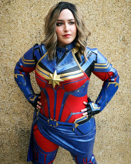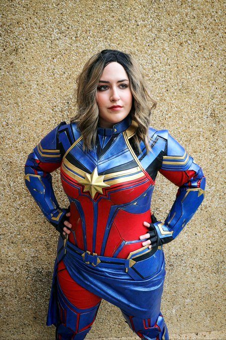 Captain Marvel Cosplay by @AikiSaul Photos by @FoodAndCosplay Taken at @MCMComicCon London 22 #captainmarvel #captainmarvelcosplay #marvel #mcu #brielarson #captainmarveledit #cosplay