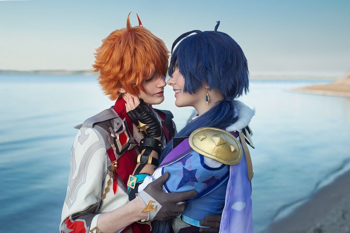 I love them together oh oh✨🌙 #childe : @_LayIa_ #Kaeya : me photo: @choah_ssi edit: me #chaeya #GenshinImpact #GenshinImpactCosplay #TartagliaCosplay #KaeyaCosplay #laylaandcostumes