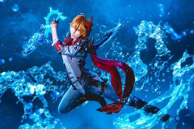 Happy Birthday Childe 💙 Childe (Genshin Impact) Cosplayer and costume/props : @VyeCos Photographer : @studiotsutsu #Childe #GenshinImpact #hoyocreators #genshintime