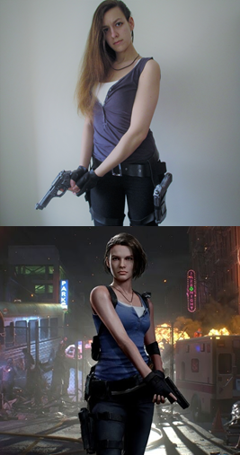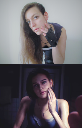 #ResidentEvil3Remake has been the talk, so I decided to do a small #photoshoot of #JillValentine in a #longhair #version. Here you have some #sidebyside #cosplay photos, and you can find the rest in my #kofi page, along with a #selfie and a small #sassy video! #re3r #stars #cop