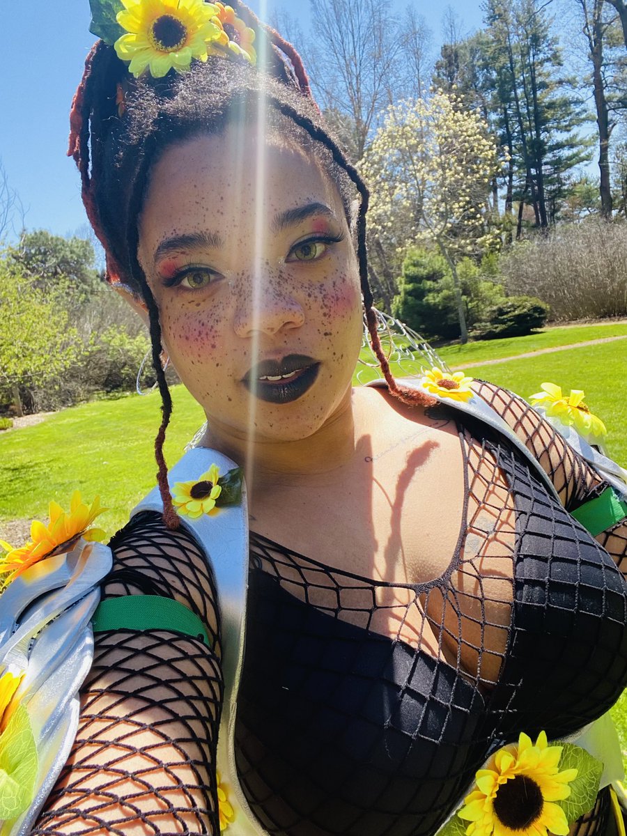 Sneak Peek of my Fairy Sunflower Kunoichi look for Black Fae Day 🌻 . . . . #blackfairy #blackfaeday #blackfairies #CosplayersofInstagram #CosplayerForACause #CTCosplayer #CosplayersOfConnecticut #CosplayersInConnecticut #BlackCosplayerHere #blackwomenincostume #poccosplay