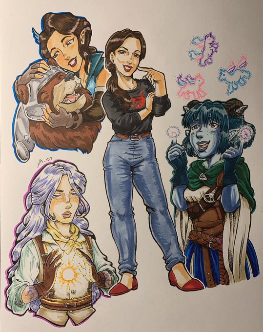 The beloved @CriticalRole cast member: @LauraBaileyVO with her characters from the main 3 campaigns: Vex’halia (with Trinket), Jester Lavorre and Imogen Temult. #CriticalRoleArt #criticalrole #VoxMachina #TheLegendofVoxMachina #MightyNein #BellsHells