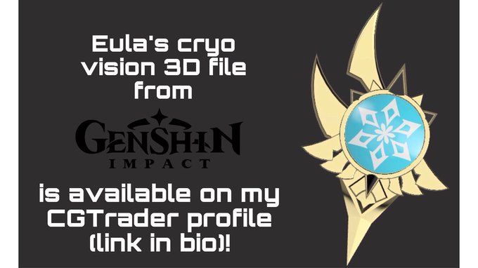 Uploaded a new #3DModel on my @CG_Trader profile: #Eula cryo vision from @GenshinImpact (link in bio)! #Genshin #GenshinImpact #eulacosplay #vision #cryo #3dmodeling #3Dprinting #cosplay #prop