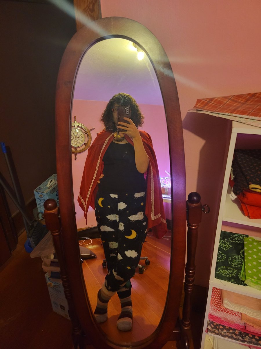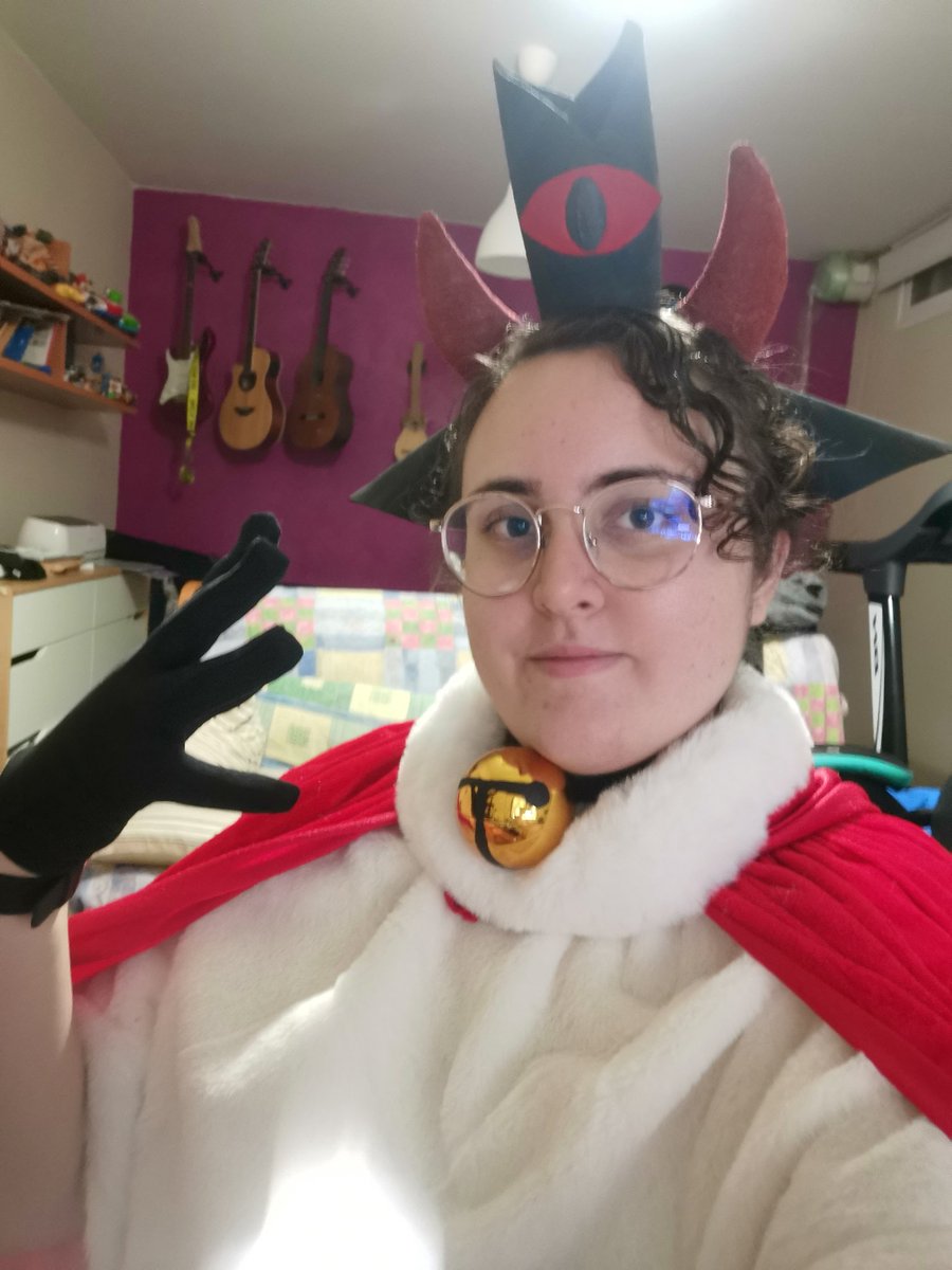 My #CultoftheLamb cape is done! With the wig and clothes accounted for all I have left are the headpieces! #cosplay #CultoftheLambArt