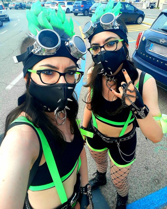 Say welcome to our new OCs, Venom and Poison, the Cybergoths 😎😎🧪🧪 Amazing day at Rimini Comix!! Thanx to all the photographers and people who took pictures and videos with us💚💚 #riminicomix #riminicomix2021 #cosplay #steampunk #cosplayer #cybergoth #cyberpunk #rawstyle #OC