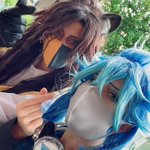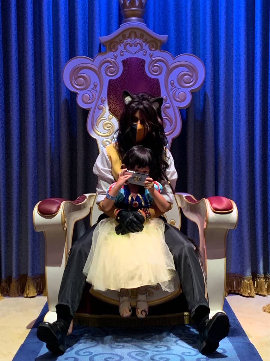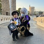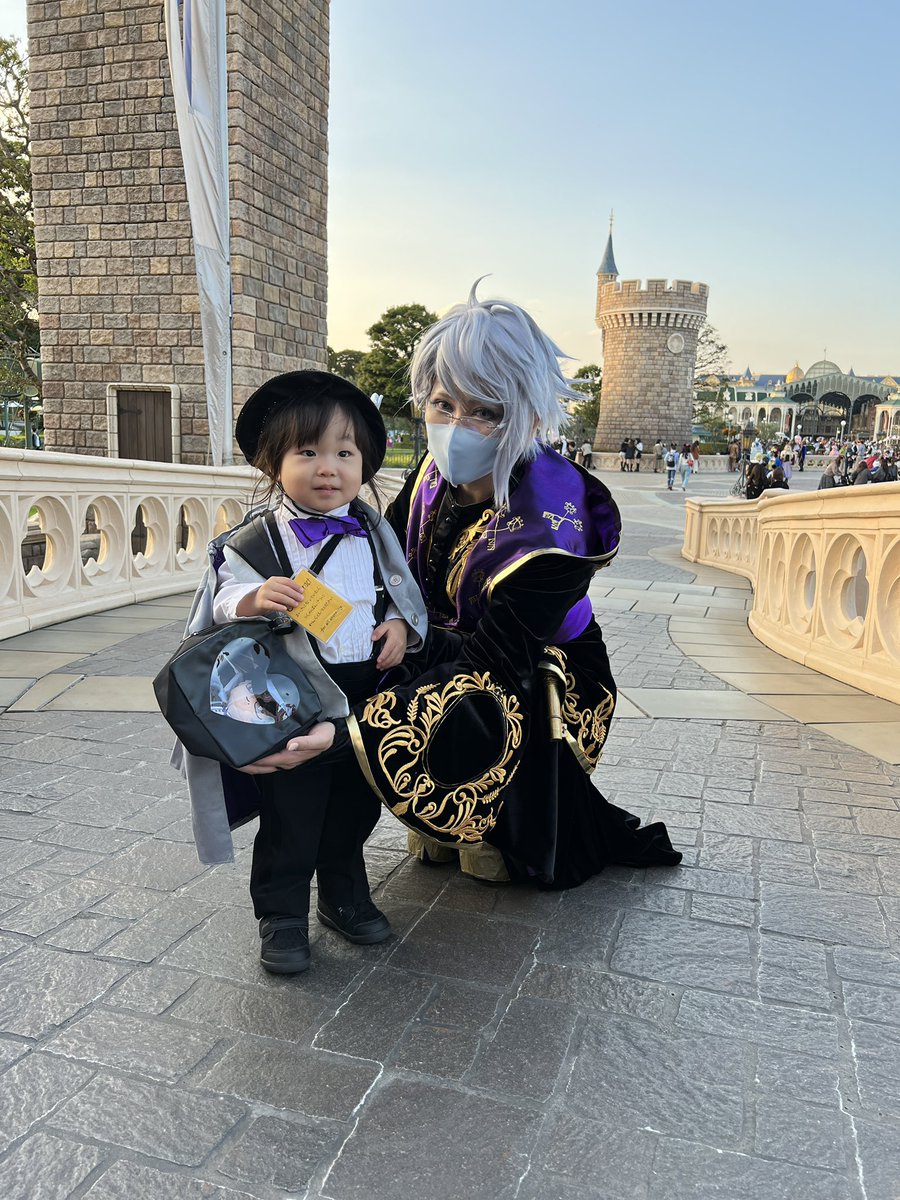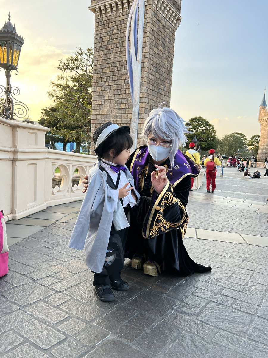 偶然出会った最高に美しいアズール先輩と一緒にお写真撮って頂きました🐙 大好きなアズールに大はしゃぎの娘🥰 一緒にいらした方達にもたくさん可愛がって頂いて感謝しかありません…! ディズニーデビュー良い思い出が出来て良かったです☺️ (ツイート許可頂いています) #Dハロ仮装2021 #Dハロ2021