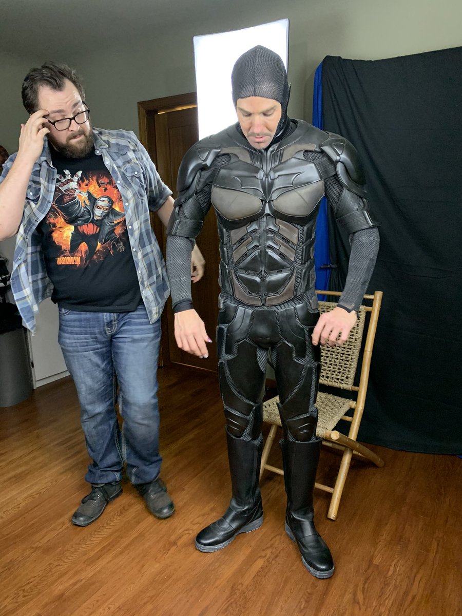 Successful meeting with my friend and brilliant makeup artist and fabricator David Woodruff as we analyze the restoration needs of my first gen Hell’s Kitchen Dark Knight suit! #batman #darkknight #costume #hellskitchen #cosplay #superhero #dccomics #DC #design