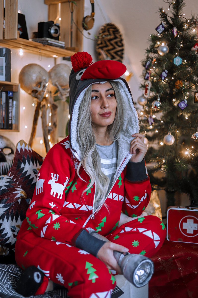 “A gift from Zarina’s mother that still brought a smile to her face after many years. It kept her warm when the heating gave out in their Manhattan apartment.” Zarina Kassir - Penguin Onesie @DeadByBHVR #dbdcosplay #deadbydaylight #zarinakassir