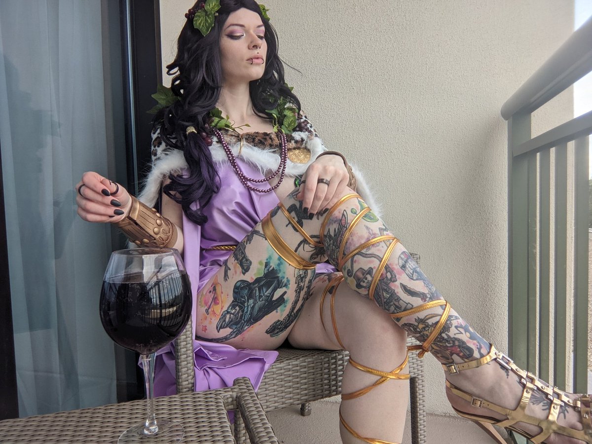 hades hyperfixation still running strong i finally got around to taking dionysus pics 🥂💜🍇 #HadesGame #Dionysus