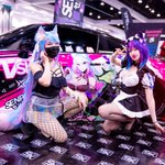 Our Silvervale and Projekt Melody cosplays with the @VShojoOfficial itasha 💖 @YuzuPyonCosplay and I had so much fun at the @SenpaiSquadNet x @XpressSkins booth, can’t wait until we see each other again at AX next year! 🥰 📷: @Neroburn_Art #DoodleVale #projektmelodyfanart