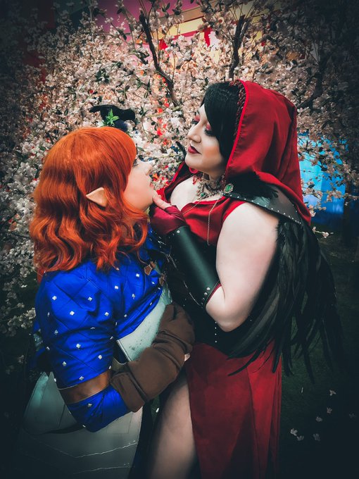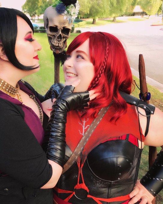 🏹”You are very beautiful Morrigan” 🪄”Tell me something I do not know.” Photos by @faradaycrystal Morrigan is @legs_mccoy Leliana is me! #dragonage #dragonagecosplay #lelianacosplay #morrigancosplay #morriganxleliana #dragonageorigins