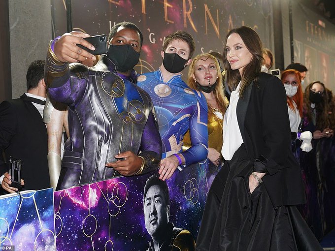 What a fantastic night with the #eternals stars and a fantastic @TheEternals movie!! Thank you for your time and talent #ChloeZhao #AngelinaJolie #GemmaChan #KitHarington #cosplay #briantyreehenry @MarvelUK