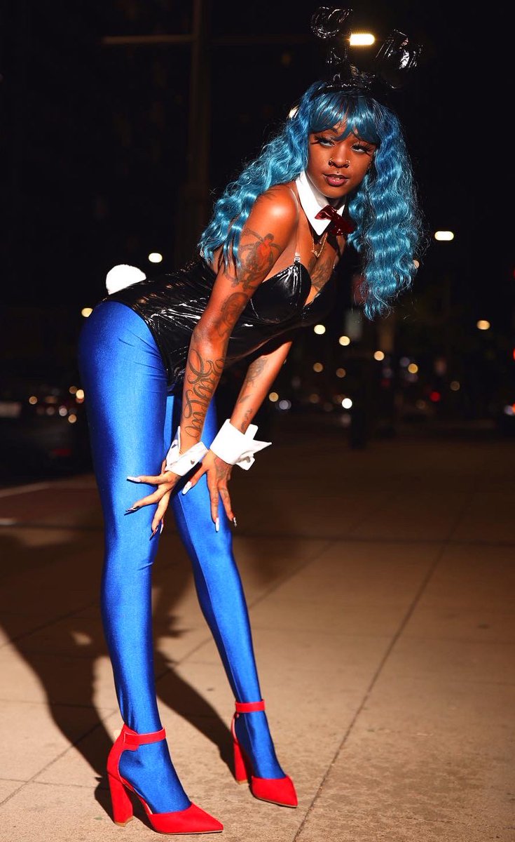 Bunny Bulma ✨💙🏁👩🏽🔬 Still lit that I pulled this off. 📸: @8Based #DayummDez #DËZ #femaleentrepreneur #dallasartist #cosplay #dragonball #bulmacosplay #explorepage #dbz #blackcosplay