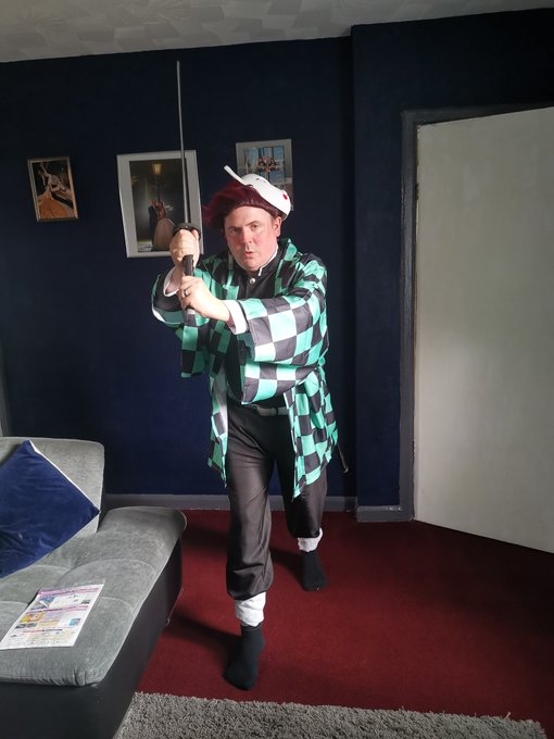 Fat dad ready to embarrass his daughter (who'll be nezuko) at Leeds #comicon #cosplay #tanjirokamado #DemonSlayer #family