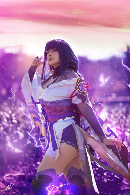 ⚡El mundo permanece constante a lo largo de los siglos. Pero la vida humana es como el rocío al amanecer o una burbuja que sube por el agua. Transitorio⚡ 📸 @IreneKuroi ✍️ Yop 🪡@dokidokicostume #RaidenShogun #Genshinlmpact #GenshinImpactCC