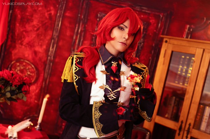 O Diluc te trouxe uma flor flamejante, vc aceitaria? 🔥🌹🔥 #diluc #genshinimpact #GenshinImpactCC #diluccosplay