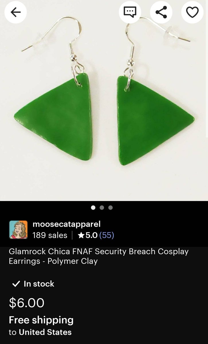 I added Glamrock Chica earrings in my shop for the FNAF Security Breach cosplayers out there :) moosecatapparel.com #cosplay #cosplayer #glamrockchica #fnafsecuritybreach #fnafcosplay