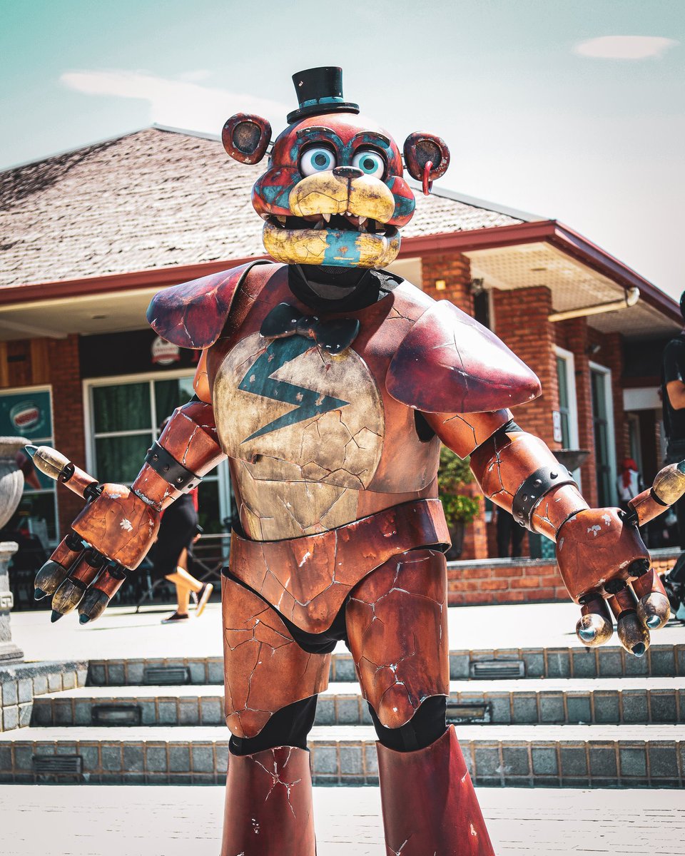 🧡💙𝕎𝕒𝕪 𝕋𝕠 𝔾𝕠 𝕊𝕦𝕡𝕖𝕣𝕤𝕥𝕒𝕣!!🐻🎤 FREDRICK FAZBEAR COMIN AT CHA LIVE! 📸: @_lunalexis_ #FNAF #fnafcosplay #securitybreach #glamrockfreddy #cosplay #MomoCon2022