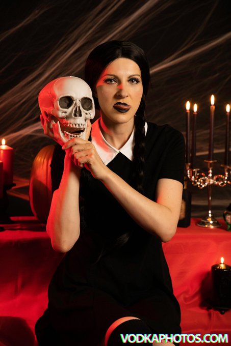 Halloween is tomorrow which means my stream with @TonkotsuKev is only one day away! 7pm central to at least 10pm Twitch.tv/tonkatsuKev Photo by @VodkaPhotos #halloween #cosplay #AddamsFamily #halloweenstream