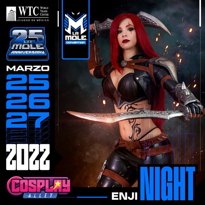 ¡Abriendo el #Hilo de los invitados internacionales para el #Cosplay Alley de #LaMole2022 nos llega hoy el anuncio oficial del regreso a México de la talentosa #Cosplayer @EnjiNight! ¡Bienvenida de nuevo! 🤗