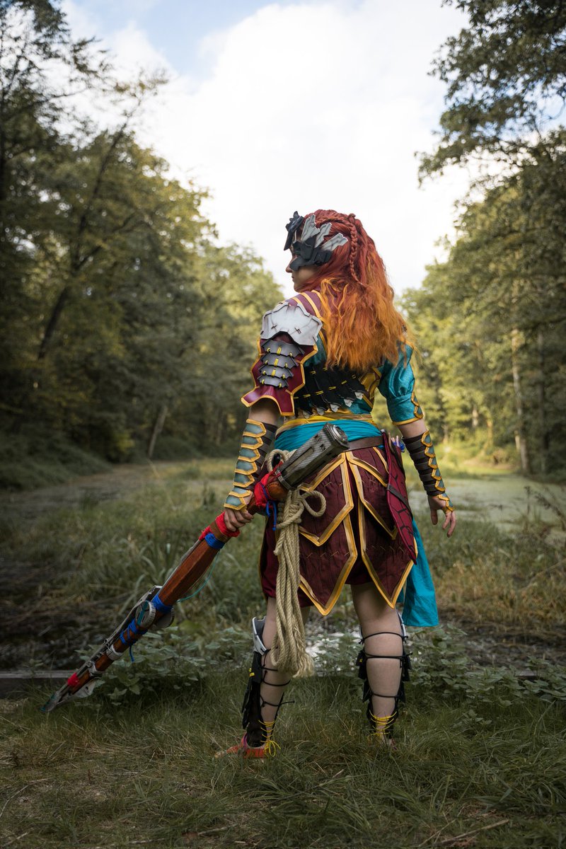 First photo of (the back of!) my newest addition to my Aloy collection! Photo taken by @blossombard with assistance by @achilltatos #aloy #horizonzerodawn #BeyondTheHorizon #cosplay @Guerrilla