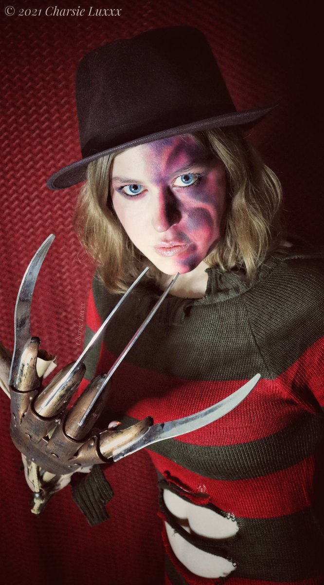 Happy Thrilling Thursday, my little Luxxxes! Around here, the celebration of horror and Halloween never stops. 🖤🔥🤘🔪💀 I hope you have a terror-ific day! 😉👻 #Horror #HorrorFam #Halloween #Cosplay #FreddyKrueger #ANightmareOnElmStreet #LuxxxyCharms #CosplayMakeup
