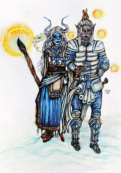 Half (to be continued) of the chaos group of weirdos in #IcewindDale ❄️✨ Featuring @LexaoftheNorth 's character Rykill and my character Kàra ❄️ #DnD #characterart