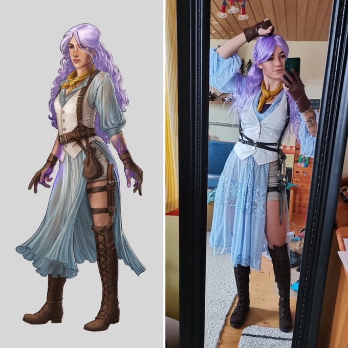 #Imogen closet cosplay is done and photographed 😜 I'm so happy with how it turned out, considering I thrifted most of this and only did some sewing work on the dress 💜👗 Properly edited photos will follow! #cosplay #CriticalRole #CriticalRoleCosplay #imogencosplay