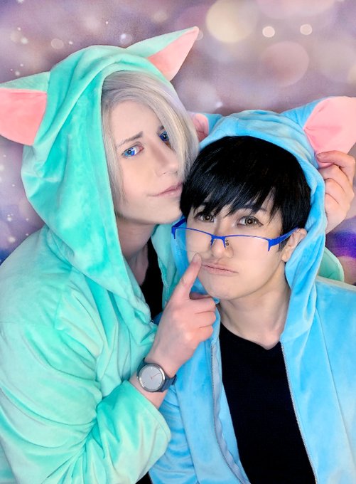 Happy #InternationalCatDay! 🐾 We cosplay'd these adorable cat hoodies from that Yoi collab art! They were so cute & comfy! We also ate Gyoza ;A; one of my FAVORITE things to wear! My Yuuri is @Pandora_Chi8 💙 #Yurionice #yoi #Cosplay #victornikiforov #Yuurikatsuki #Cats