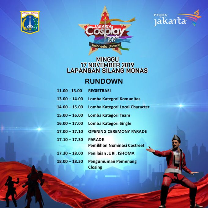 Ajak teman dan keluarga menyaksikan parade ini ya! Untuk kamu cosplayer yang mau ikutan, informasinya dapat dilihat pada IG: jakartacosplay2019. #EnjoyJakarta #JakartaTourism #JKT #Indonesia #Jakarta #DKIJakarta #cosplaycompetion #Cosplay #CosplayJakarta