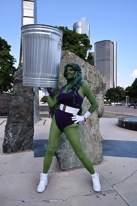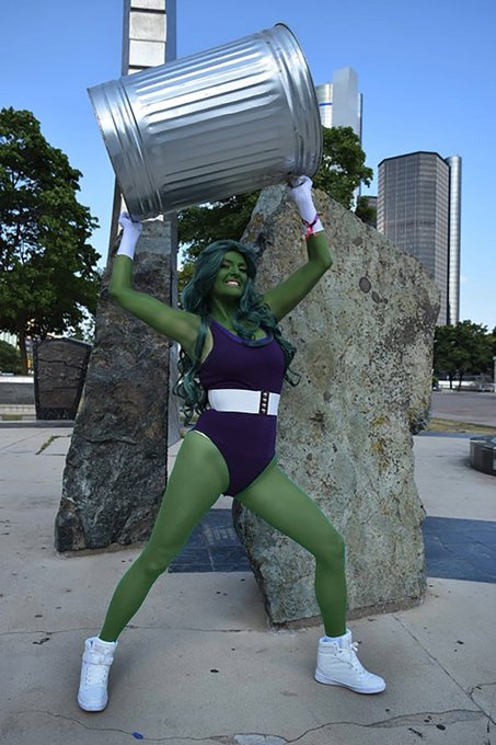 Just taking out the trash. Just another day in the life of a superhero! Wig by @ardawigs Luthien in Olive Body paint by @mehronmakeup #shehulk #shehulkcosplay #green #hulk #marvel #avengers #marvelcomics #jenniferwalters #jenniferwalterscosplay #amhcosplays #cosplay #cosplayer