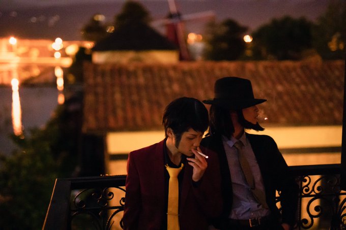 Midnight smoke break under the moonlight Lupin: @molttatsuya Jigen: @en_yen Photo: @zuofengtwphotog #LupinTheThird #JigenDaisuke #ルパン三世