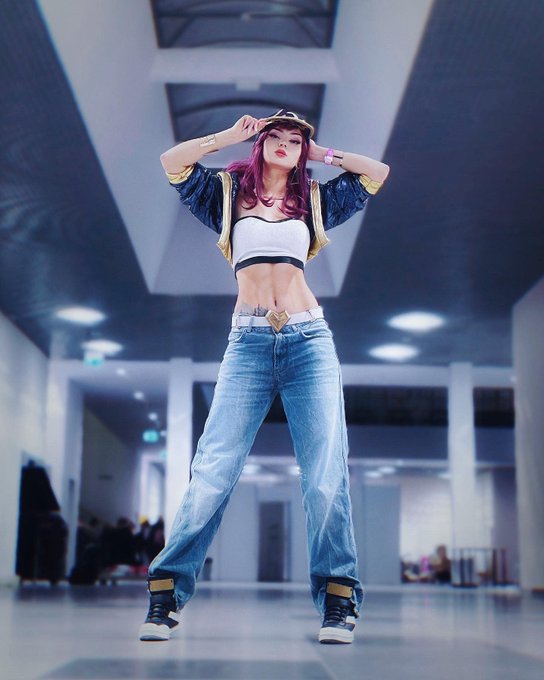A couple of my K/DA Akali pictures that I took at #Magnificon ! I feel much better with joggers and baggy pants, that's why I didn't have leggings then 😅But IMO they look even better! #Akali #LeagueofLegends #KDA #Cosplay