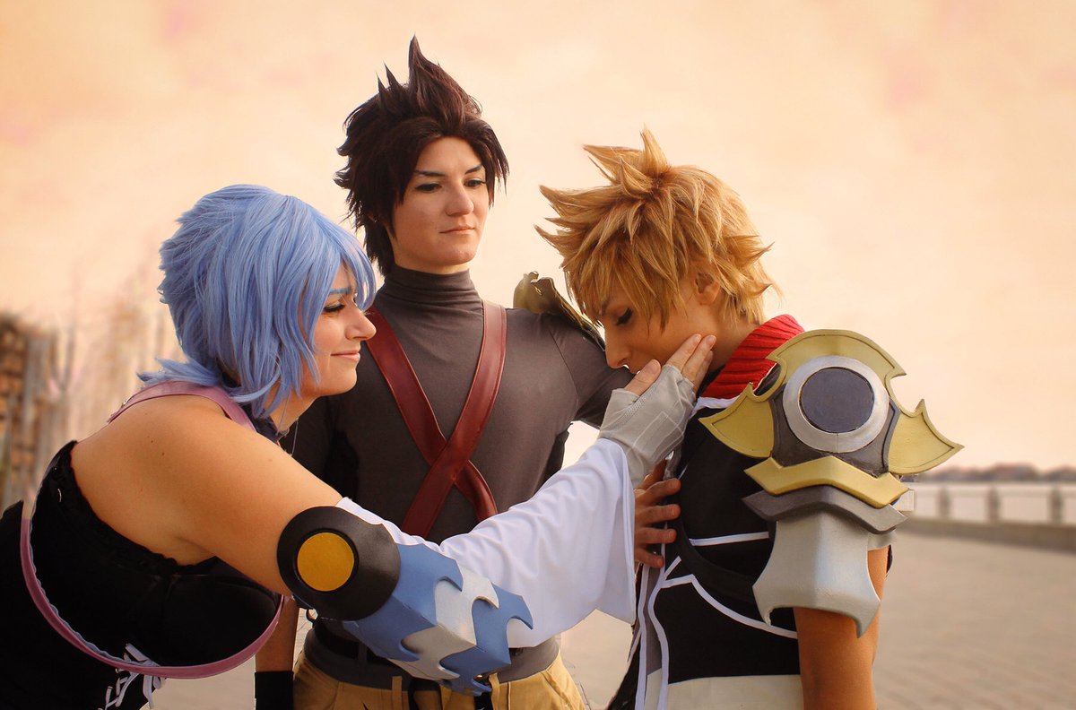 “An unbreakable connection.” 💚Ventus: @OiNoya 🧡Terra: @HamonHunk 💙Aqua: @sareisu 📸: @catweasels #KingdomHearts #khbbs #BirthbySleep #khcosplay #kingdomheartscosplay #KH3