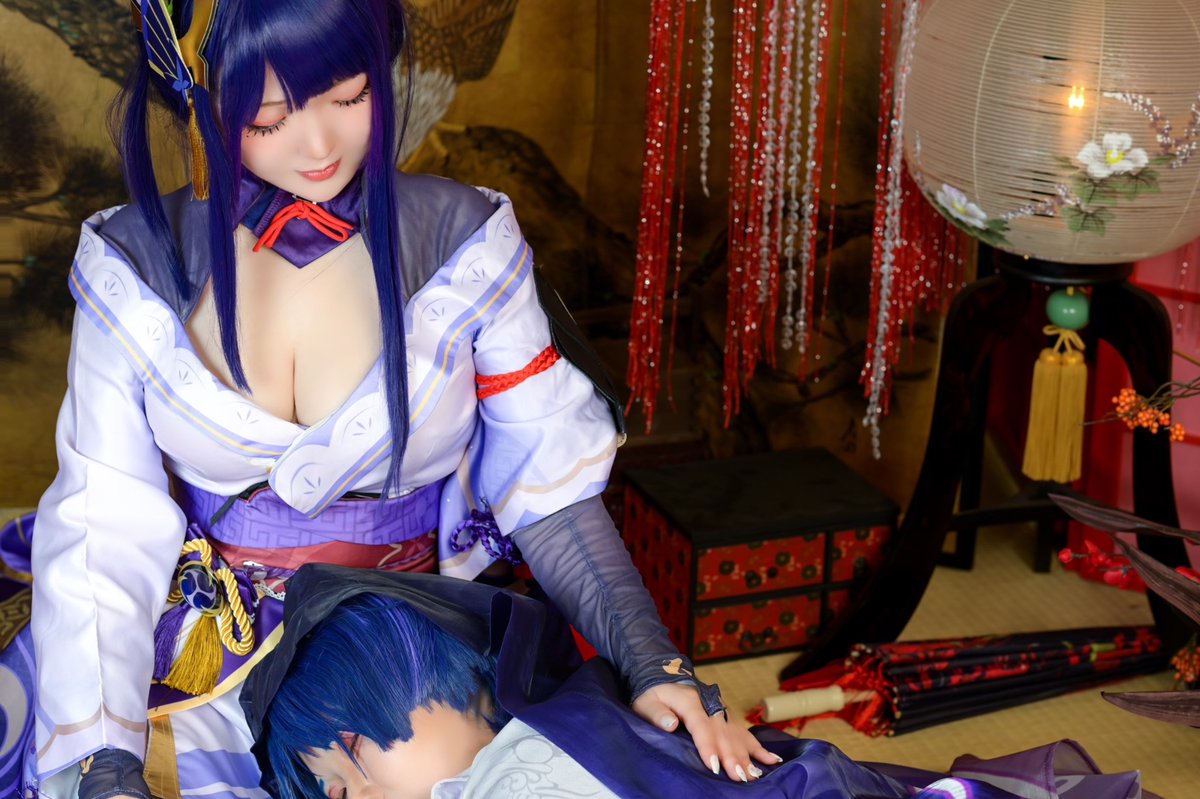 Cos. 原神 在りし日のひととき 雷電将軍(@_yuu_0728 ) p.(@kei4g63 )さん #genshinImpactcosplay #RaidenShogun #Kabukimono
