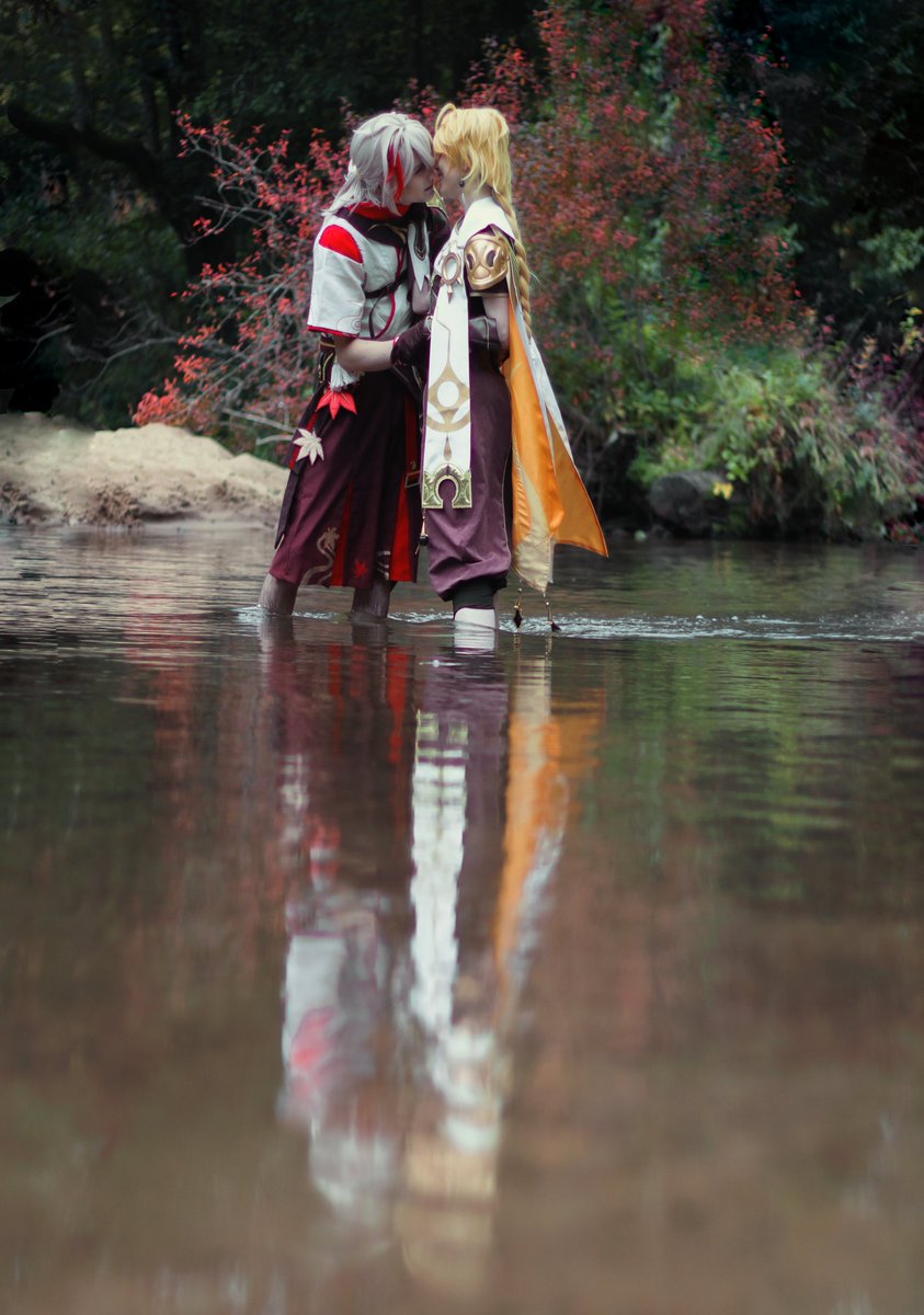 А холодной осенью вспомним теплые летние деньки! Хотя на деле было +16, и мы одубели, пока фотографировались в воде. Но результат того стоит! #kazuha #aether #kazuther #GenshinImpact #GenshinImpactcosplay