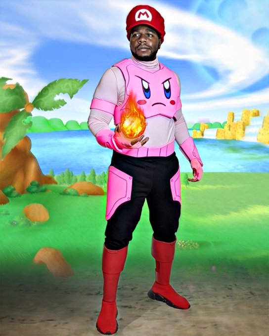 Happy #mar10 y'all...enjoy this old pic of swaggy's Kirby with Mario powers cosplay #kirby #supermario #nintendo #supermarioworld #cosplay