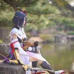 "The sound of rain masks the enemy's footsteps. Stay alert." Happy birthday to the one and only Kujou Sara! The mightly Tengu of the Tenryou Commission~ ⚡️💜 📷: Arsene Imagery #Genshinlmpact #kujousara #cosplay