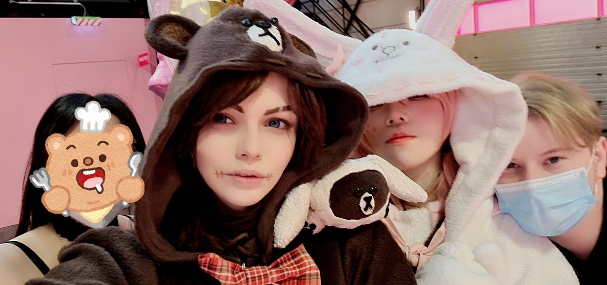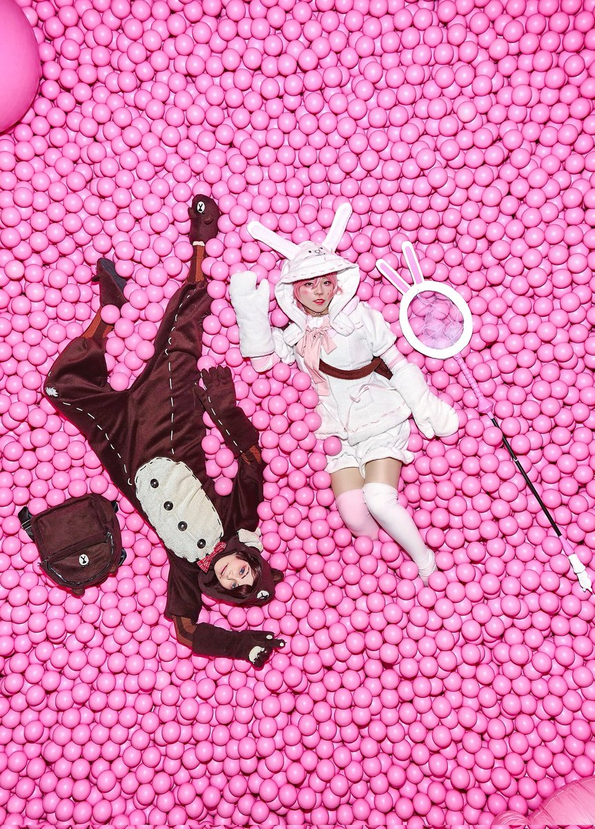 We had a wonderful photoshoot yesterday- #identityVイラスト x #LINEFRIENDS crossover Conny x Entomologist Melly Plinius: @_Keisa_ 🐰 Brown x Mercernary Naib Subdear: Me 🐻 Assistant: Xii 🦨 Photo: @c4ires
