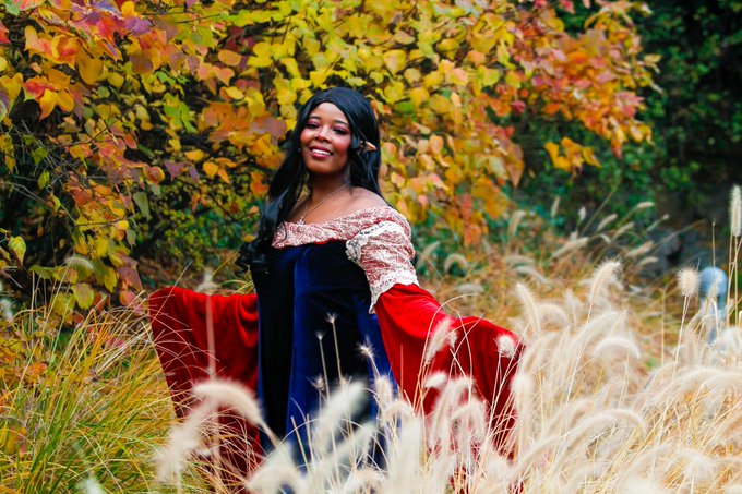 Day 11 of #28DaysOfBlackCosplay with my dear Frodo in one of my 'newest' photoshoots to celebrate #LOTRonPrime 🌿I still can't describe the happiness of seeing black elves and black dwarves in the lore now