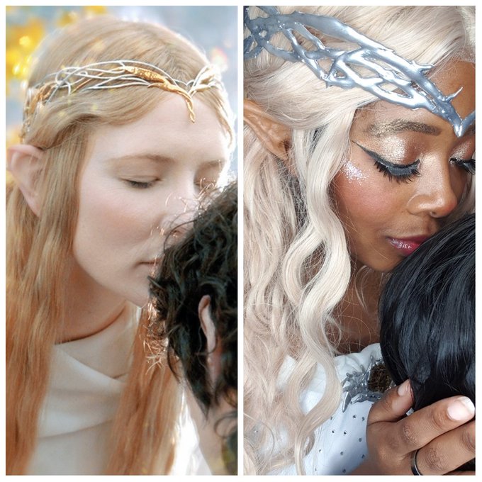 I'll never forgive the LOTR movies for not giving us the Galadriel Arwen scenes we deserve 😞 Cant believe ROP starts TOMORROW. I'm so excited i can hardly breath 😭 Arwen is @so_sooyoil #LOTR #LOTRonPrime #LordOfTheRings #cosplay #galadriel #arwen