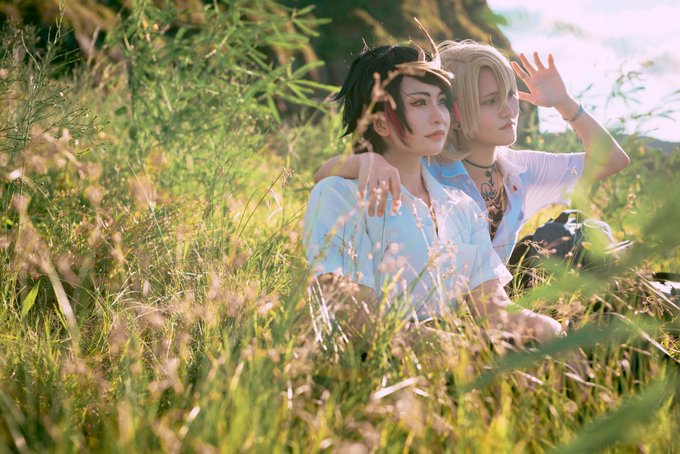 shuca cos lucacos: 我(贺翊) shucos: 卮酒 同人文来自: LOFTER: 林野《第427天跳海》 #ShuYamino #lucakaneshiro #lucashu #cosplay