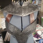 So, after my cosplay stream I was hella motivated. 49 spikes are currently attached to my helmet. And I'm already preparing another 15. This helmet is getting closer to being finished! #cosplay #cosplaywip #cosplaystream #mhw #nergigante