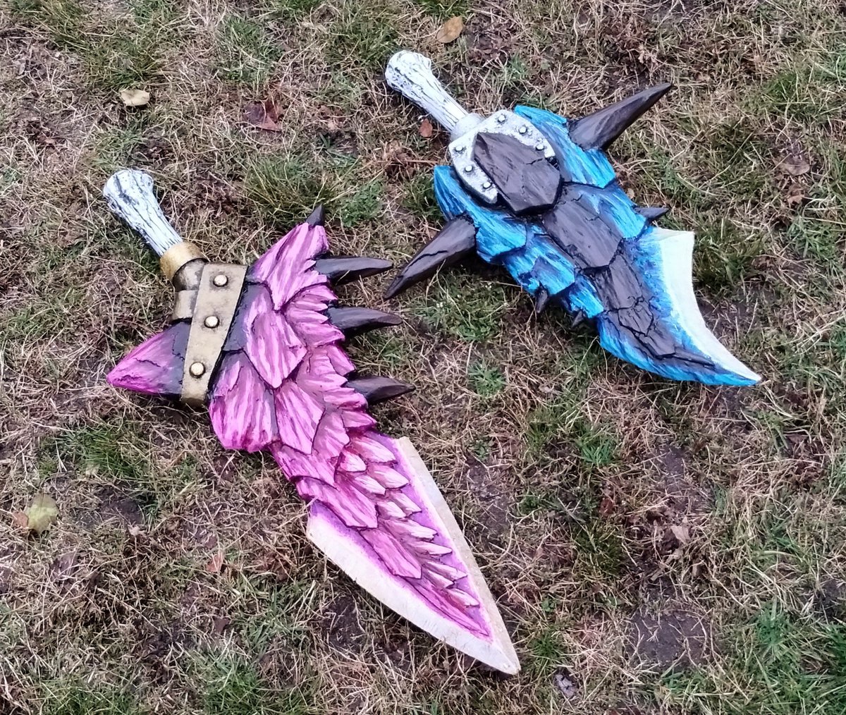 I know they don't exist in the games, but I made a pink and azure set of dual blades. 💕 #MonsterHunter #monsterhuntercosplay #cosplay #モンハン #モンハンコスプレ #コスプレ #greatsword