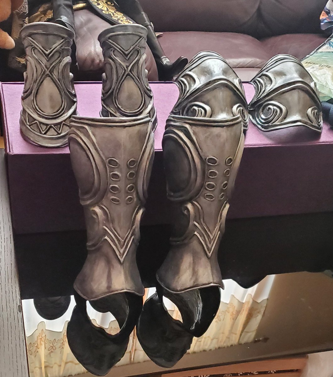 Male Viera's lower legs armor are made... next part to finish up are his claws shoes. slowly but surely this costume is getting done by end of summer!^^#maleviera #cosplaywip #ff14 #malevieraffxiv