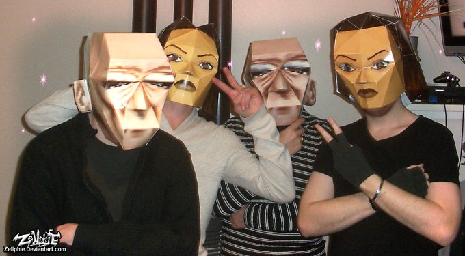 The PaperCroft Family. #papercraft #tombraider #laracroft #winstonsmith #TR25 #masks #weird #cosplay or not cosplay? x)